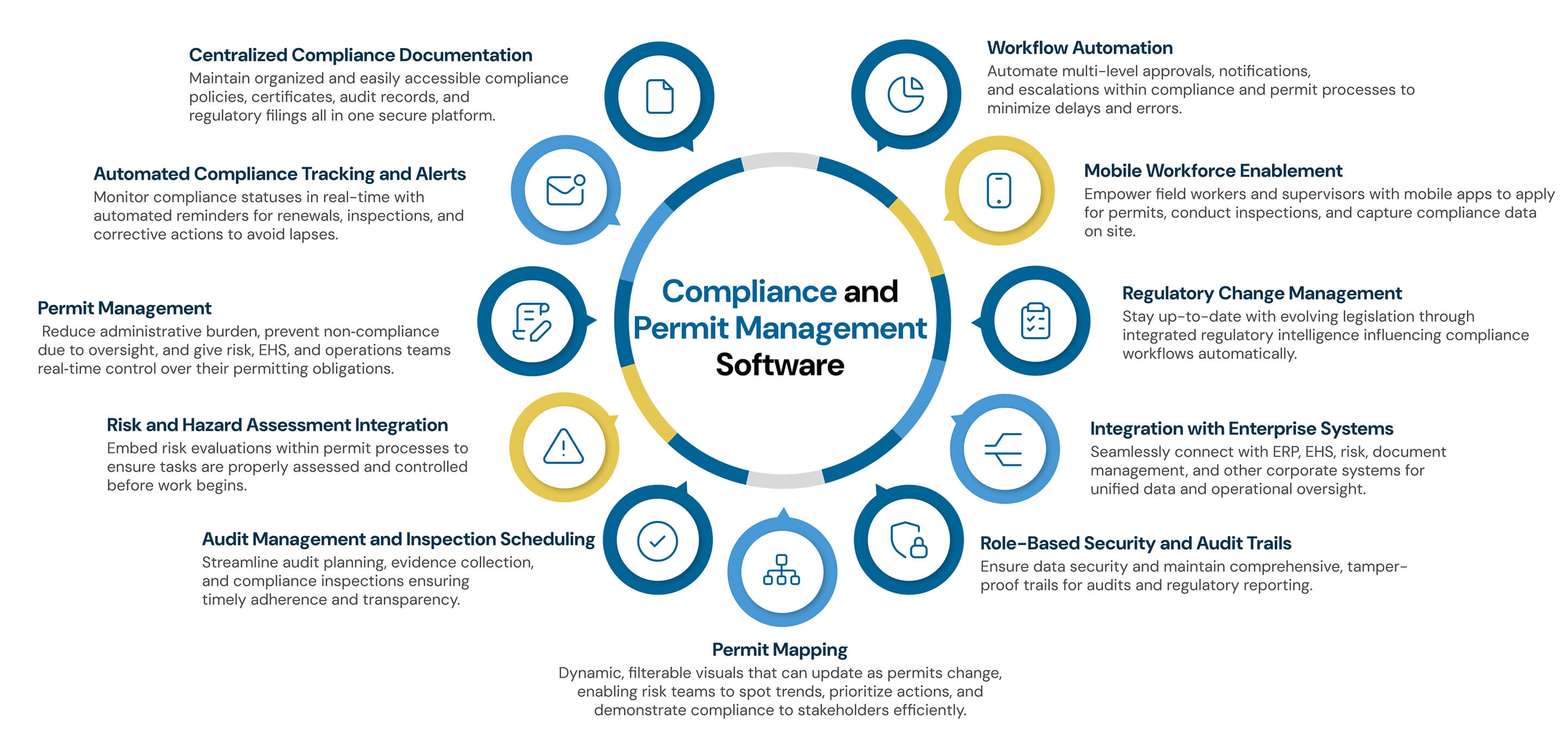 Compliance and permit management solutions centralize this complexity— streamlining workflows, automating monitoring, and providing real-time visibility into compliance performance to avoid costly violations and operational disruptions.