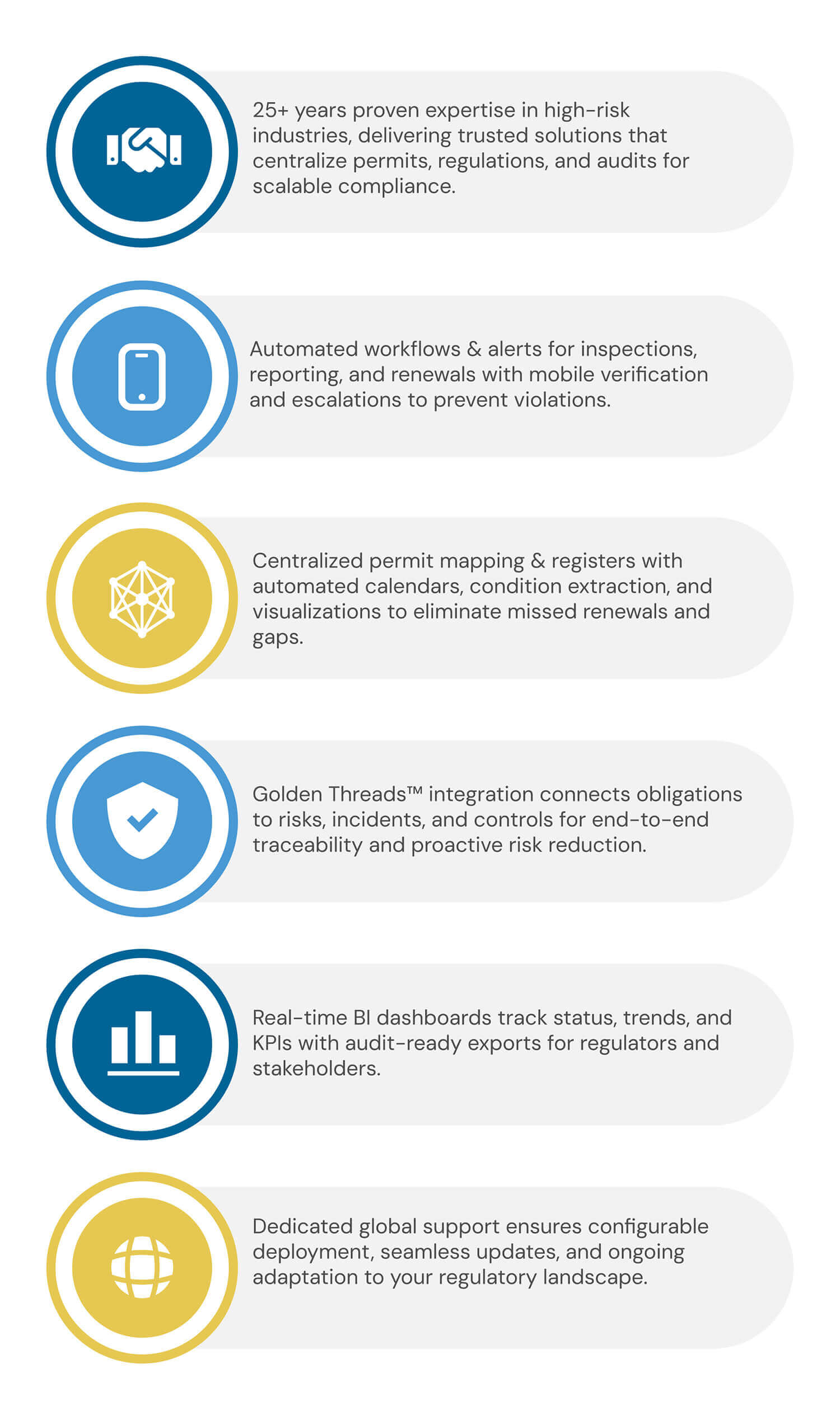 Reduce administrative burden, prevent non‑compliance due to oversight, and give risk, EHS, and operations teams real‑time control over their permitting obligations.