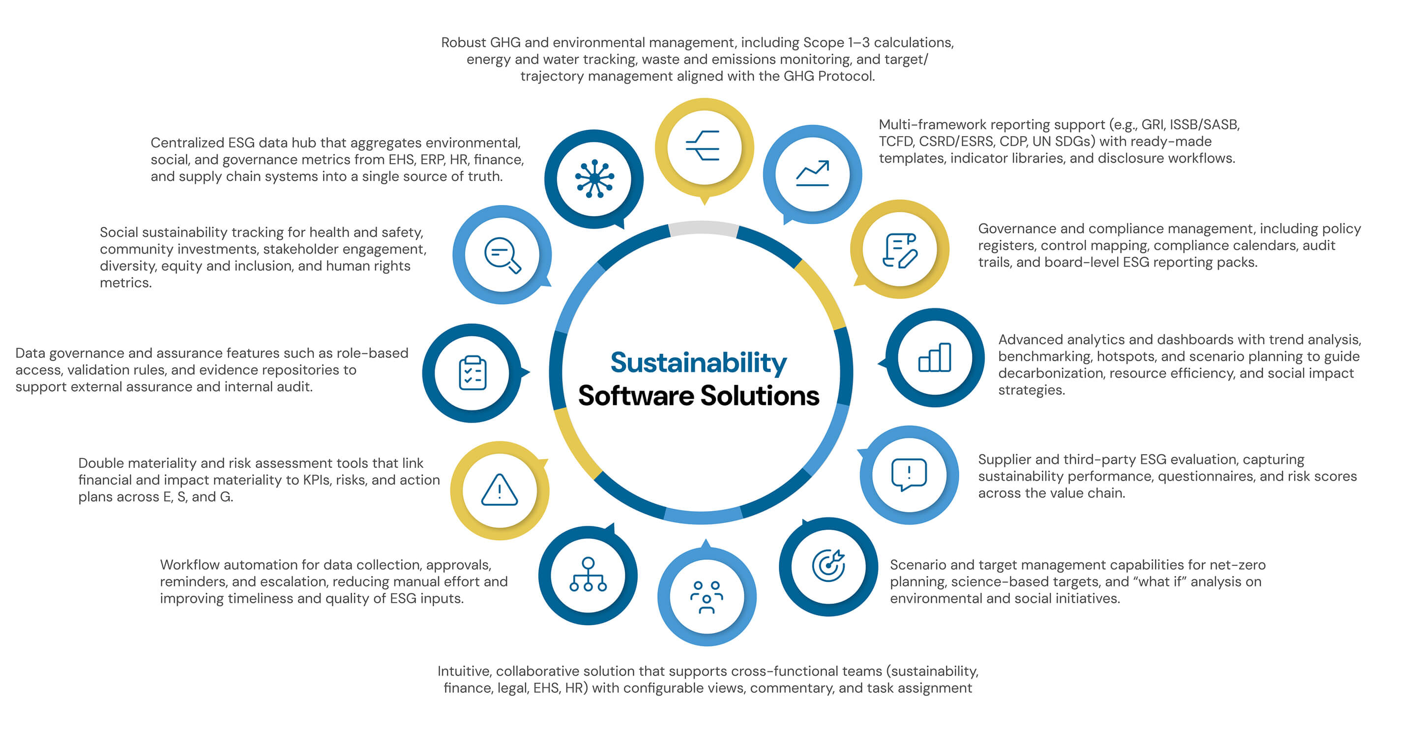 Advanced sustainability software consolidates environmental impact, social responsibility, and governance data into a unified platform—empowering decision-makers to measure, manage, and report with confidence.